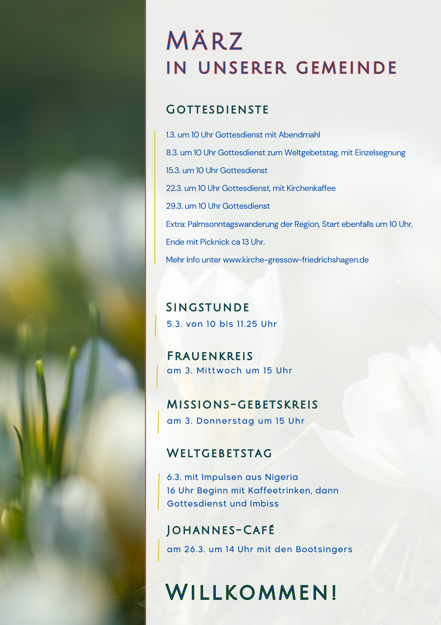 Schön, dass Sie uns gefunden haben! Wir kommen gern zusammen: wochentags, sonntags, junge Menschen, ältere Menschen, hin und wieder auch ein Hund…